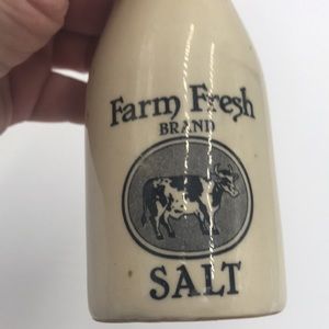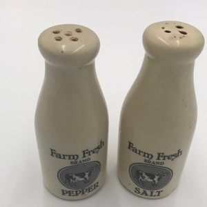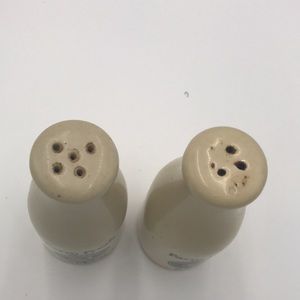 ❤️ Vintage salt and pepper shakers. Beige with beautiful black writing