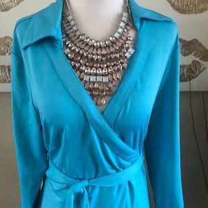 Julie Brown slinky stretch jersey wrap dress in bright blue