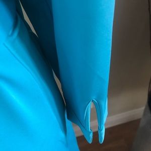 Three-quarter sleeves with slit cuffs.