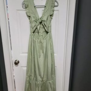 Self Portrait Pistachio cotton poplin maxi dress green 4