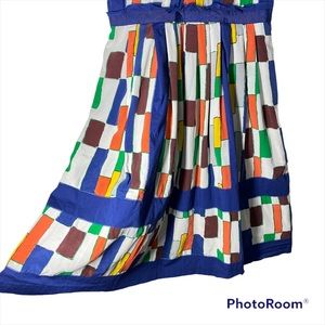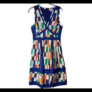 Plenty Tracy Reese Applique Frock Tiles Silk Dress With Pockets Blue White Sz 8