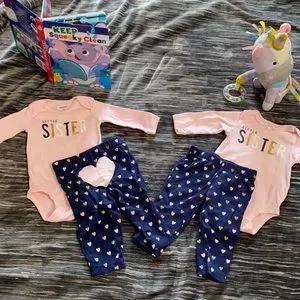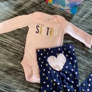 Adorable! Both are size 3 months. Comes with four pieces. Please ask any questions before making your purchase. When bundling three or more items for my closet you automatically receive 20% off. From a smoke free home. Hyper allergenic pet friendly.
