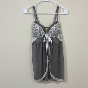 Jessica Simpson Gray White Mesh Lace Babydoll Lingerie Top Size S