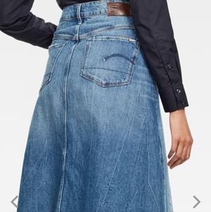 The 3301 A-line midi ripped edge skirt as an alternative to your favorite 5-pocket jeans. This skirt is designed with a ripped hem finish.