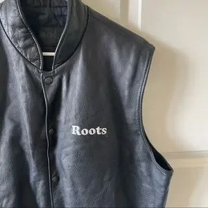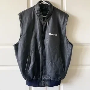 Roots Navy Leather Embroidered USA Vest