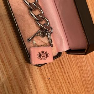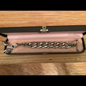 Up for consideration is a Juicy Couture Silver tone bracelet with the following three charms: