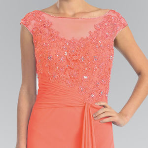 Illusion Nekcline Cap Sleeves Long Dress GL1100