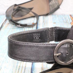 Earth Hera Gray Leather Adjustable Ankle Strap Sandals Size 7.5 B