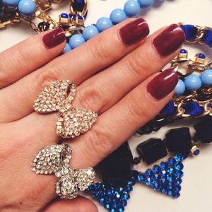 Beautiful bow shape is paved with crystals creating a festive look on your finger.