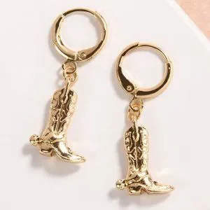 Metal cowboy boots huggie drop earrings.