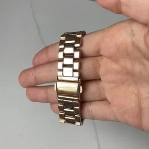 Adorable rose gold watch with cubic bevel.