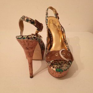 🎀SALE🎀NWOT Rhinestone Cork Platform High Heels Open Toe Buckle Strap Shoes