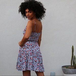Floral Mini Dress w/ smocked back bodice. Adjustable straps. Perfect for the beach or any vacation.
