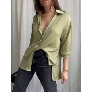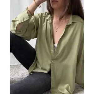 The LOURIE Button-down Shirt is designed from a silky, buttery-smooth finish material that feels delicious to the touch. It features a loose closure with small and delicate mother-of-pearl shell buttons that highlight it in a sophisticated way. Long sleeves with buttoned cuffs. Pair it with your favorite jeans or shorts, or layered with your favorite crop tops or bras! Wardrobe staple.