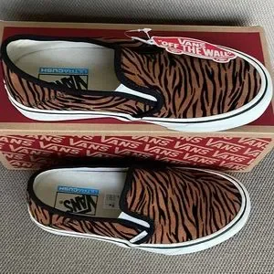 New in the box authentic women’s Vans Slip-On Safari Animal Stripes Black Marshmallow sneakers