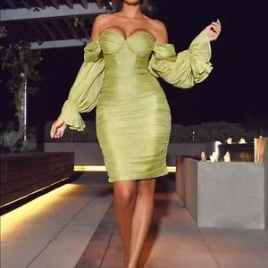 Miss Circle pink Silk Pleated Off Shoulder Balloon Sleeves Dress