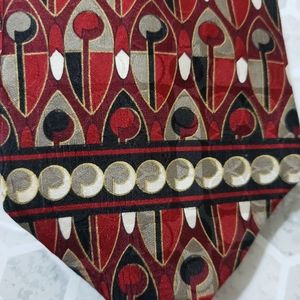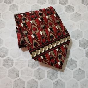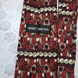Henry Grethel Mens Necktie Tie Burgundy Red Grey Beige Geometric 100% Silk