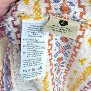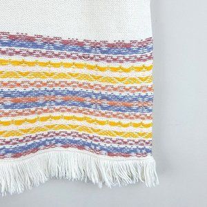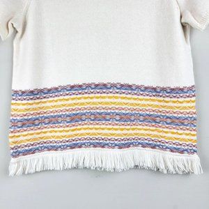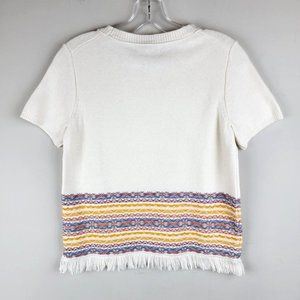 Madewell Cotton Blend Colorful V Neck Short Sleeve Fringe Hem Cropped Top Size S