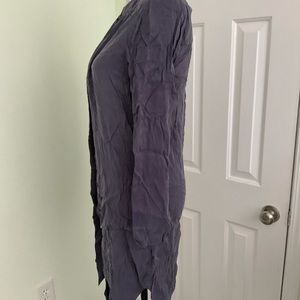 Splendid Women’s Washed Cupro Shirtdress. The model is wearing one in black, but the color available is a beautiful Dusty Plum color. This is a long sleeve shirtdress in a lightweight woven Cupro and Rayon.