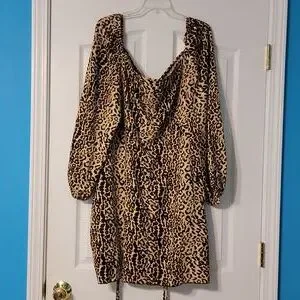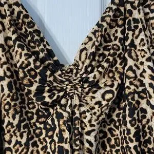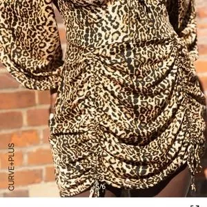 Perfect for a night out on the town! Beautiful, brand new, never worn, no tags sweetheart neckline leopard print ruched form fitting dress. It be ruched up in the front with strings or can be let out to around knee length. dress does not have ruching in the back.