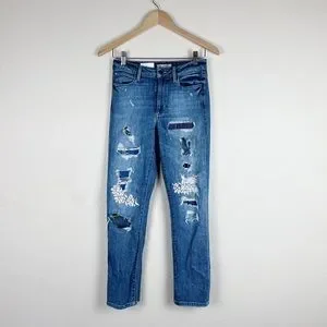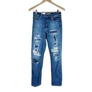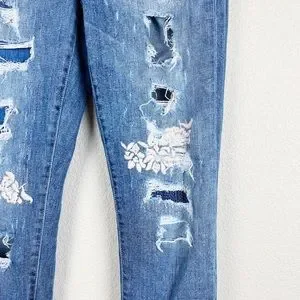 GUESS Embroidered Floral Distressed Hugh Rise Skinny Jeans Sz 26
