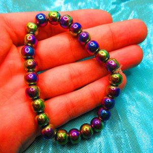 Rainbow Titanium Hematite 8mm Round 7" Stretchy Gemstone Bracelet