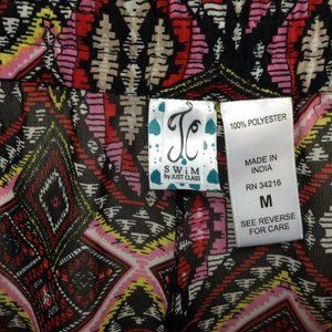 TC SWIM Women's Swim Pants Sheer Red Black Geo Loose Fit Swim Cover Up Pants Med