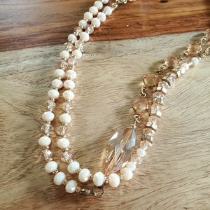 Long Beaded Necklace & Earring Set Natural Cream & Champagne Gold