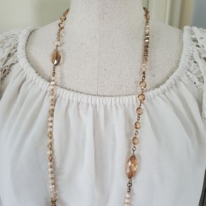 Long necklace can be doubled up for two different looks