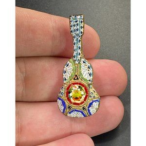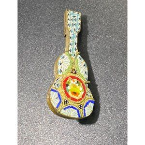Vintage Micro Mosaic Guitar Brooch Pin Italy Gold Tone Instrument