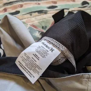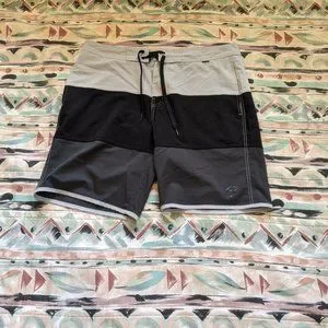 Hurley Surf Surfer Beach Men's Drawstring Black Gray Board Shorts Size 33 x 8.5"