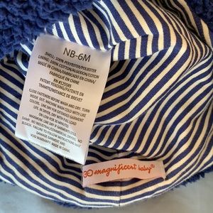 Lighter blue hat has magnets closure and the matching mittens have magnets too. So you won’t loose one of them.