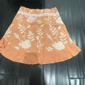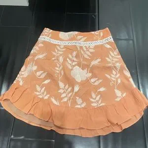 Don't let this peachy keen cutie fool you. She may look sweet, but she's sexy too! The For Love and Lemons Mia Mini Skirt was designed to adorn your legs with the ruffle shirttail hemline. With the intricate embroidered tulle and contrast trims, this mini features a fitted waist yolk to flatter your build from top to bottom. Peach and white embroidered mini skirt with concealed zip closure.