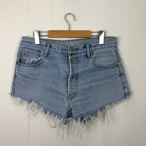 Vintage Levi’s 501 Button Fly Frayed Hem Cut Off Shorts in a size 32. Light wash.