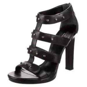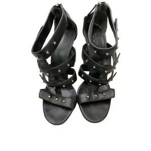 Gucci Leather Gladiator Heels EU Size 38 Black Sigourney Stiletto Platform Women