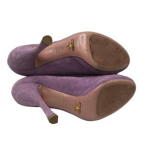 Prada Womens High Heels Size 38 Lavendar Suede Scalloped Edge Platform Leather Pumps Shoes