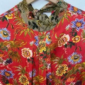 Nikasha Red Floral Toscana Tie Back Peasant Blouse