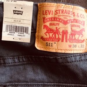 NWT Mens Gray Levi’s 511 Slim Stretch Jeans W36 L32