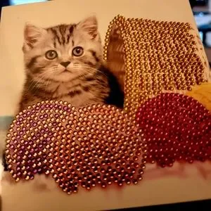 Kitty Playing in Yarn Basket Greeting Card