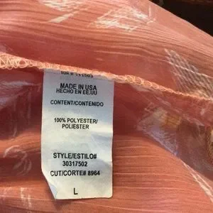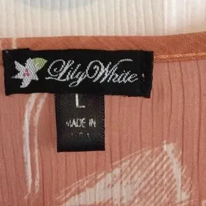 Super cute top size large by Lily White. It has elastic around the upper waist area. It has two cute ruffles around the bottom. The color is a salmon color.