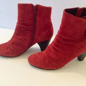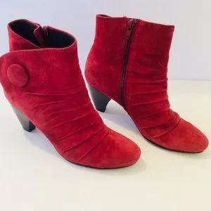Vera Cuoio Women's Red Suede Ankle Bootie Size 7M