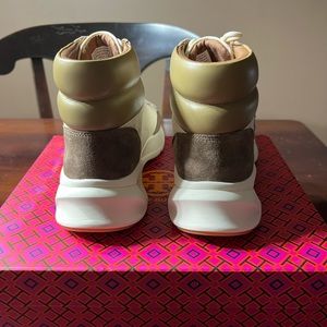 An oversized ergonomic sole and a mixed-finish upper lend dimension to a high-top sneaker with a cushioned midsole for added support.
