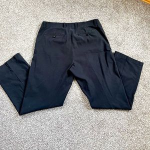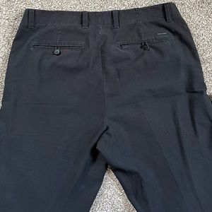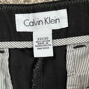 Calvin Klein 33x30 black straight leg pants. Front slit pockets and back button pockets. Fabric is ribbed smaller than corduroy texture.