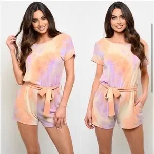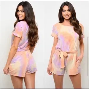 🎉LAST ONE🎉Soft coral purple tie dye women’s romper