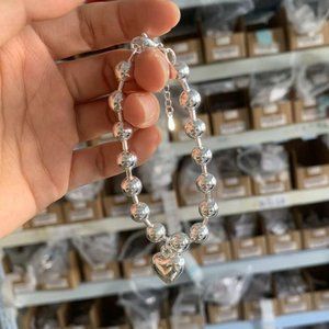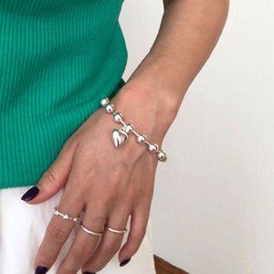 925 Sterling Silver Chunky Silver Heart Beaded Bracelet Statement Bead Bracelet
