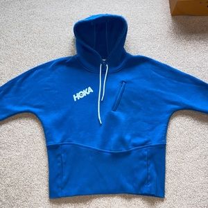 HOKA blue hoodie with thumb slits and chest pocket