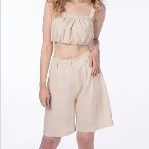 Modern style, Set combo features a cropped tank and comfy high waist shorts made of 100% cotton. Cream color in S, M, and L