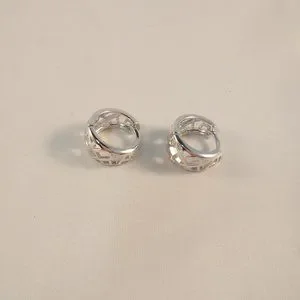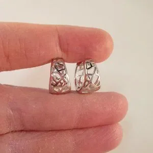 Beautiful tapered design hollow carved hoop earrings 18k white gold filled. Top quality, high polished shine, brand new, never been worn. Lead, nickel free. These earrings sparkle.