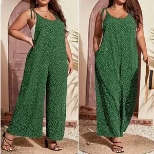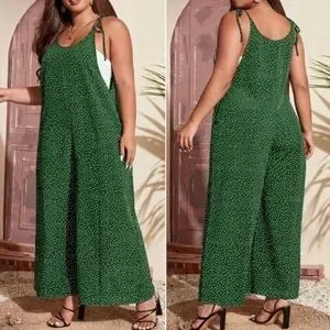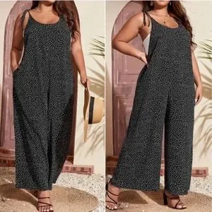 Boho Plus Polka Dot Pocket Wide leg Jumper Jumpsuit