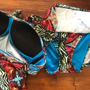 BECCA Rebecca Virtue M Bohemian Boho Butterfly Halter SWIMSUIT Tankini & Skirt
